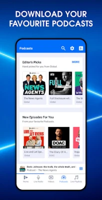 Sua jornada auditiva é pessoalmente adaptada dentro do Global Player. Com uma página inicial configurável, organize suas estações favoritas e retome programas perdidos, garantindo que nunca perca um momento importante. Desfrute de recomendações personalizadas de músicas e podcasts, com a liberdade de avançar faixas ou indicar suas preferências, moldando continuamente seu fluxo de áudio. Reviva as últimas sete dias de transmissão de suas estações preferidas ou faça o download de episódios e programas para ouvir offline, ideal para quando estiver em movimento. Global Player transcende a rádio tradicional, apresentando um ecossistema completo de entretenimento, com playlists exclusivas e conteúdo sob demanda ao seu alcance.