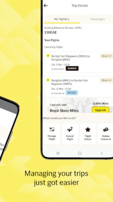 Transforme a maneira como você planeja e gerencia suas jornadas aéreas. Com o aplicativo da Royal Brunei Airlines, o mundo está ao seu alcance, oferecendo uma experiência de reserva de passagens otimizada e flexível. Seja para compromissos de negócios, férias dos sonhos ou uma combinação de ambos, nosso aplicativo é sua ferramenta definitiva para buscar voos, explorar mais de 25 cidades globais e garantir sua passagem de ida ou volta com total conveniência. Desfrute da liberdade de escolher entre pagamentos em dinheiro ou o resgate de suas milhas Royal Skies, transformando cada jornada em uma oportunidade gratificante.