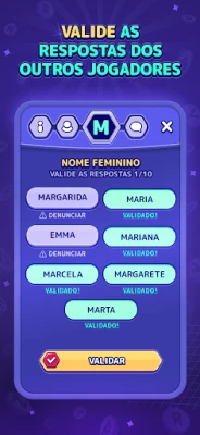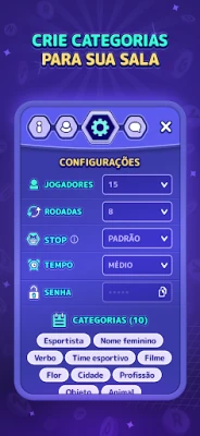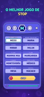 Desafie sua mente e aguce seu raciocínio com Stopots, o jogo de palavras que eleva a diversão competitiva a um novo nível. Antes de cada partida eletrizante, você e seus amigos moldam a experiência, escolhendo as categorias que ditarão o ritmo do desafio – seja "Nome", "Cor", "Animal" ou qualquer outra ideia criativa. Essa personalização garante que cada rodada de Stopots seja única, testando a amplitude de seu vocabulário e a velocidade de suas associações em diversos campos do conhecimento.