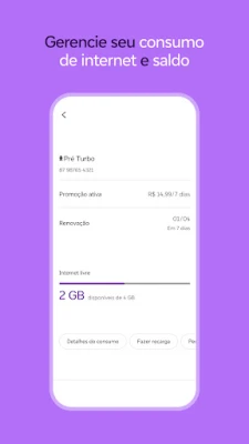Dentro do App Vivo, você encontra um universo de funcionalidades. Consulte e gerencie suas faturas na seção de Assinaturas, efetuando pagamentos com agilidade sempre que precisar. Clientes Vivo Pré desfrutam da liberdade de compartilhar ou enviar internet para outros números Vivo, tudo de forma rápida e intuitiva. Explore a Loja, um espaço repleto das melhores ofertas, permitindo assinar novos serviços da Vivo ou de parceiros e adquirir produtos diversos com condições exclusivas, feitas sob medida para você. E para turbinar sua conexão, a área de Bônus é perfeita para garantir internet extra ao recarregar.