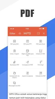 WPS Office+PDF redefine a produtividade móvel, consolidando-se como a ferramenta indispensável para mais de 700 milhões de utilizadores em todo o mundo. Compacta e incrivelmente leve, ocupando menos de 37 MB, esta suite de escritório gratuita e multifuncional foi cuidadosamente projetada para lhe permitir criar, visualizar e editar documentos de forma ágil e eficiente. Quer esteja em casa, no escritório ou em viagem, WPS Office+PDF garante que a sua produtividade nunca para, diretamente do seu telemóvel ou tablet Android.